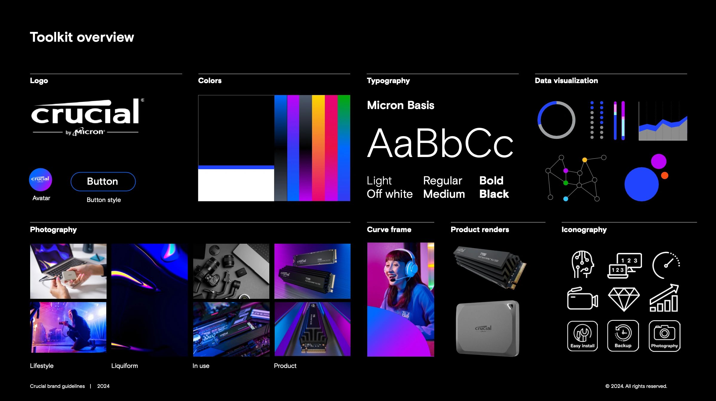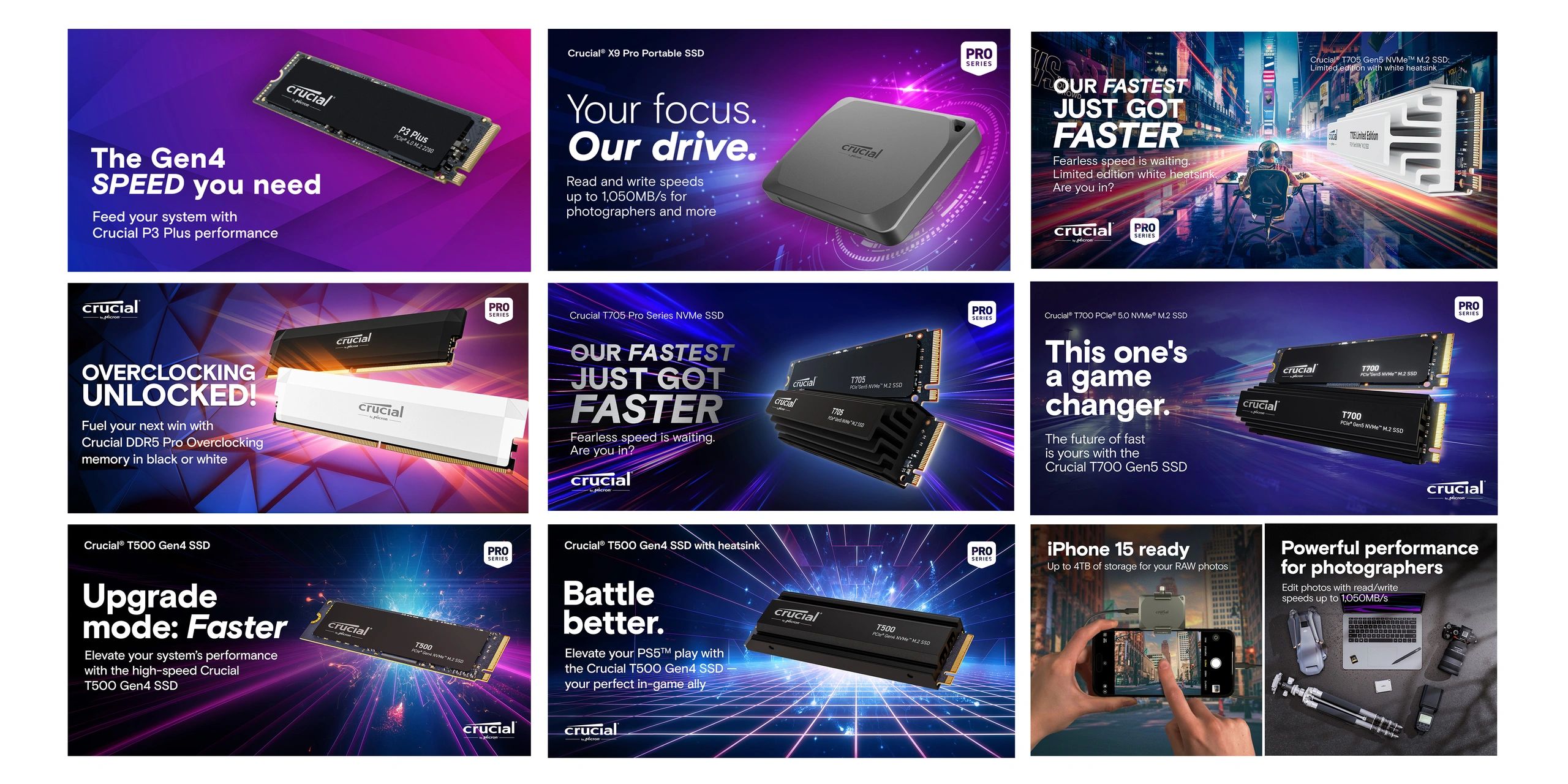 As the Creative Director for Micron Semiconductor's consumer brand, Crucial Technology, I led a comprehensive global brand refresh that spanned North America, APAC, and EMEA regions. This initiative encompassed updates to web design, packaging, tone of voice, video content, photography, digital marketing, and collaborations with e-tail and retail partners.